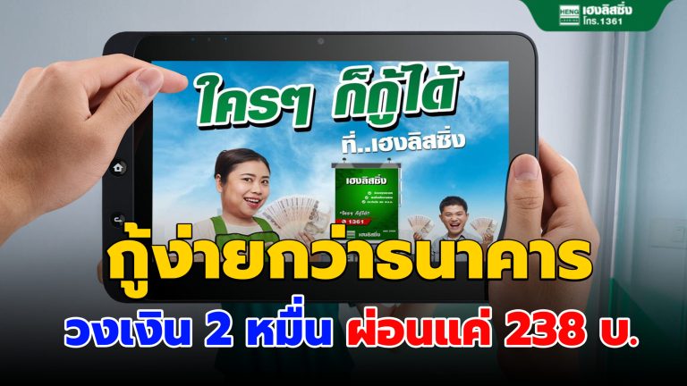 เฮงลิสซิ่ง วงเงิน 20,000 บาท ผ่อนเริ่มต้น 238 บาท/เดือน อนุมัติง่าย ทุกอาชีพ