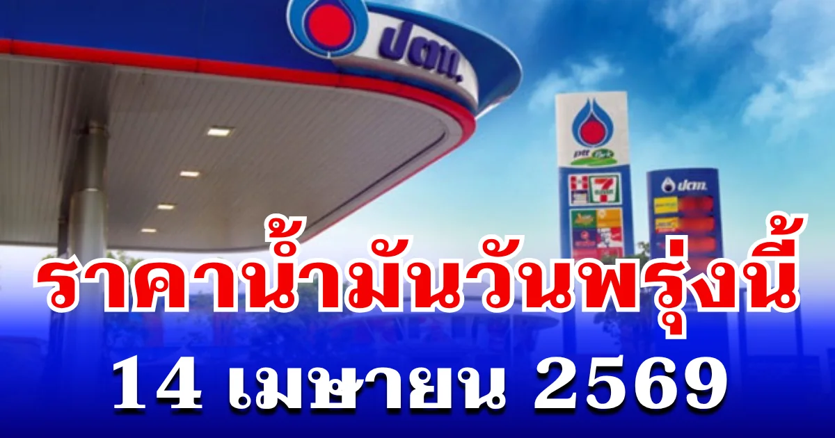 ราคาน้ำมันวันพรุ่งนี้ 14 เมษายน 2569 อัปเดตราคาน้ำมันล่าสุด ราคาน้ำมันทุกชนิด ราคาน้ำมันเบนซิน ราคาน้ำมันแก๊สโซฮอล์ ราคาน้ำมันดีเซล จาก 4 ปั๊มน้ำมัน ประกอบด้วย บริษัท ปตท.