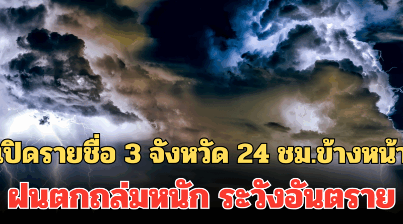 ประกาศแล้ว! กรมอุตุฯ เปิดรายชื่อ 3 จังหวัด 24 ชม.ข้างหน้า ฝนตกถล่มหนัก ระวังอันตราย