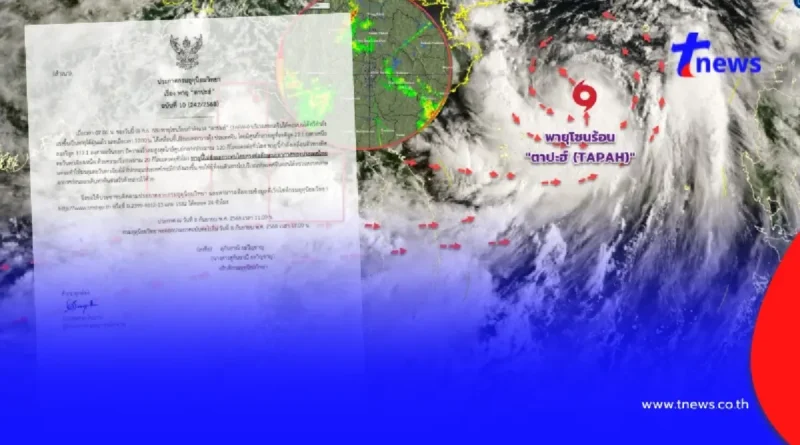 กรมอุตุนิยมวิทยาเผยแพร่เตือนภัยพายุตาปะฮ์ ฉบับ 10 โดยพายุทวีกำลังเป็นพายุไต้ฝุ่นแล้ว เปิดเส้นทางเดินล่าสุด