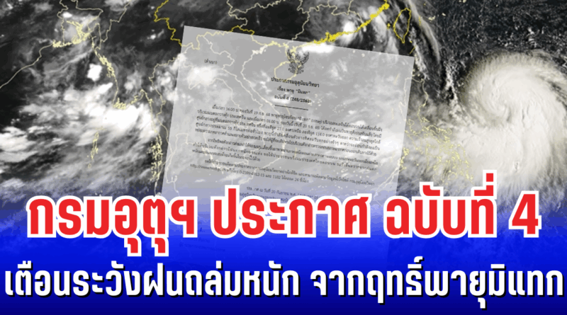 กรมอุตุฯ ประกาศ ฉบับที่ 4 เตือนระวังฝนถล่มหนัก จากฤทธิ์พายุมิแทก
